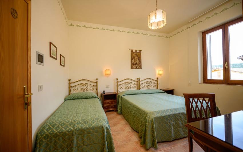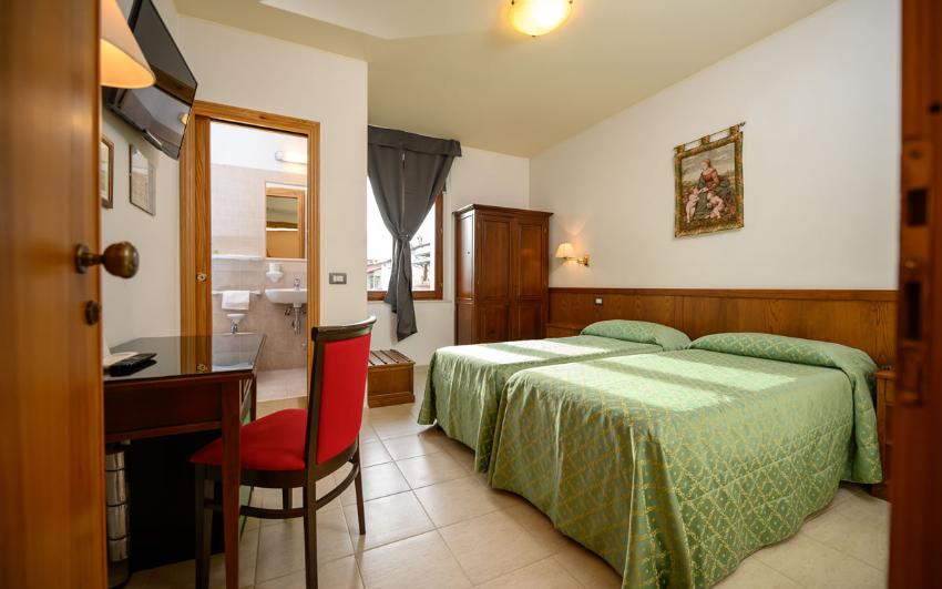 Le camere doppie, disponibili in versione matrimoniale o twin con due letti singoli, sono arredate in stile arte povera e offrono un ambiente semplice, accogliente e funzionale, ideale per chi cerca tranquillità e comfort a pochi passi dal corpo centrale.