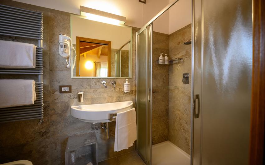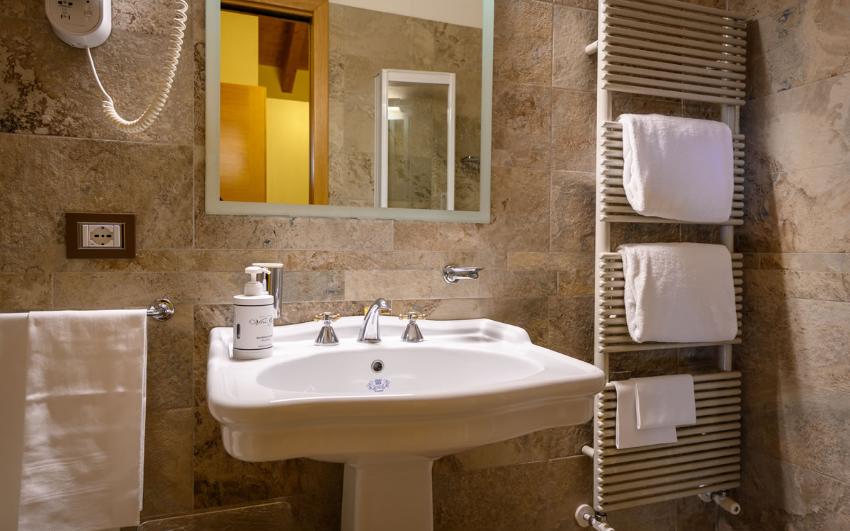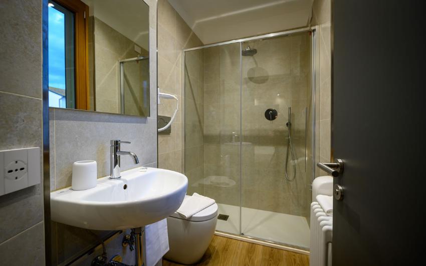Ogni sistemazione può essere matrimoniale o twin e dispone di riscaldamento e raffrescamento a pavimento, bagno privato, TV a schermo piatto da 32” con Sky Business, Wi-Fi gratuito, minibar e cassaforte.